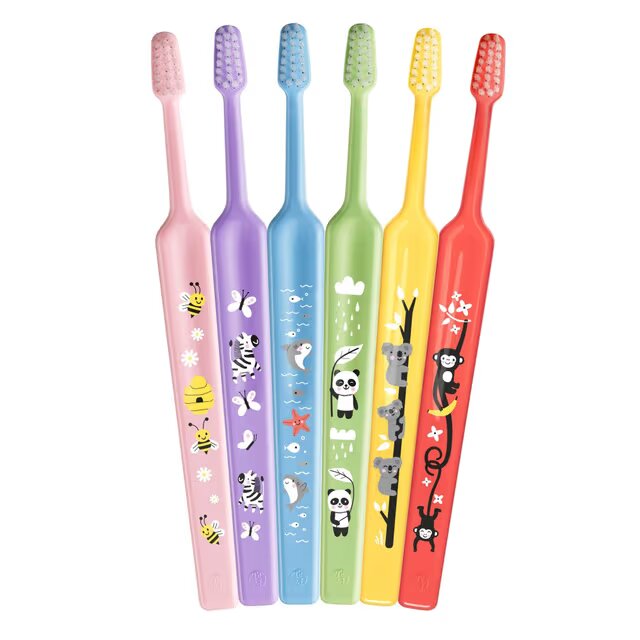Họa tiết và màu sắc đáng yêu: Sản phẩm thường có các hình in loài vật (Zoo prints) sinh động với màu sắc nhẹ nhàng, giúp bé cảm thấy thú vị và không sợ hãi khi đến giờ đánh răng.