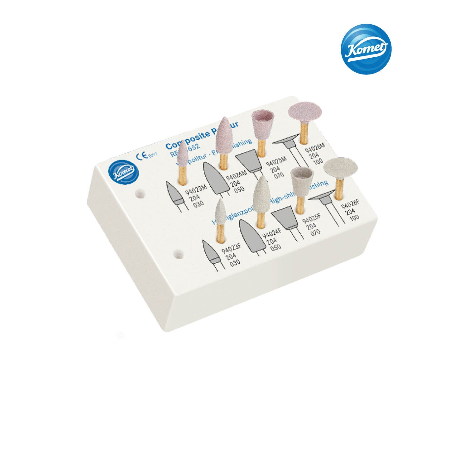Khi nói đến việc đánh bóng sửa soạn vật liệu tổng hợp, bác sĩ có thể chọn vô số dụng cụ tùy chọn. Nhưng tất cả bác sĩ đều mong muốn đánh bóng hoàn thiện trong thời gian ngắn bằng cách sử dụng dụng cụ đánh bóng cao cấp với độ bền tuyệt vời. Để giải quyết vấn đề này, Komet đã phát triển bộ đánh bóng composite 2 bước. Bổ sung mới nhất: dụng cụ đánh bóng xoắn ốc, phù hợp với khái niệm "một dụng cụ phù hợp với tất cả". Bộ đánh bóng composite 4652 đảm bảo có tuổi thọ dài lâu và độ linh hoạt tuyệt vời. Giai đoạn đánh bóng ban đầu được thực hiện với dụng cụ đánh bóng màu hồng nhạt mới. Nhờ có lớp kim cương đặc biệt, các dụng cụ đánh bóng này phù hợp cho việc chỉnh sửa hình dạng và có thể hiệu quả trước khi đánh bóng bề mặt. Tiếp theo là giai đoạn đánh bóng hoàn thiện, nơi các dụng cụ đánh bóng màu vàng sáng được sử dụng để tạo ra độ sáng bóng cao nhất. Sự tương tác tuyệt vời giữa kim cương mịn và lớp keo đặc biệt giúp tạo ra độ bóng hoàn hảo.