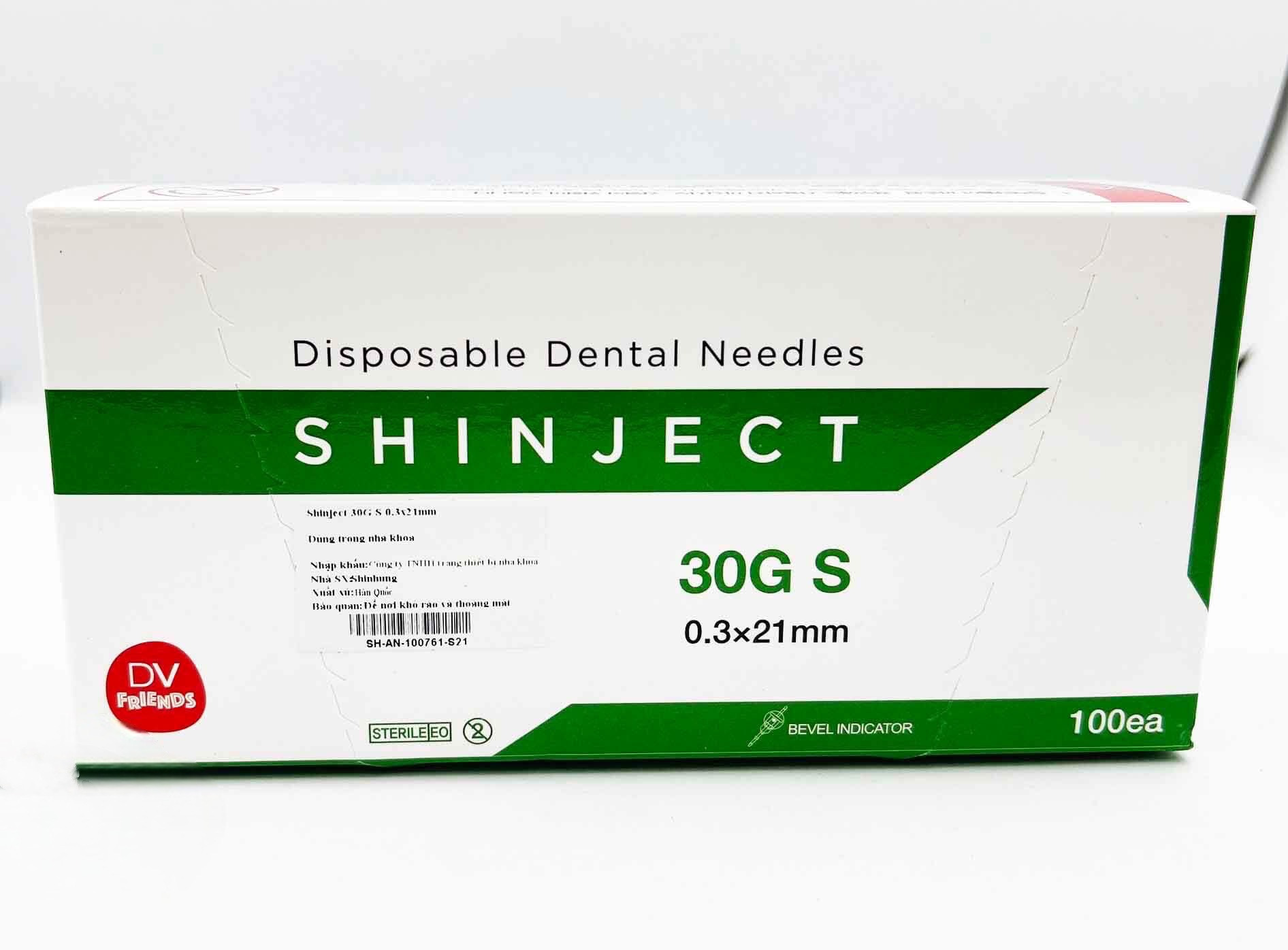 - Kim tiêm gây tê nha khoa Shinject (Hàn Quốc) là sản phẩm cao cấp từ thương hiệu Shinhung, nổi bật với thiết kế mũi kim Ultra-sharp 3 cạnh sắc bén và thân kim silic hóa, giúp giảm đau tối đa và hạn chế tổn thương mô cho bệnh nhân. Sản phẩm có thiết kế thông minh, dễ nhận diện, an toàn, và tương thích với nhiều loại ống chích, phù hợp cho mọi thao tác gây tê nha khoa.