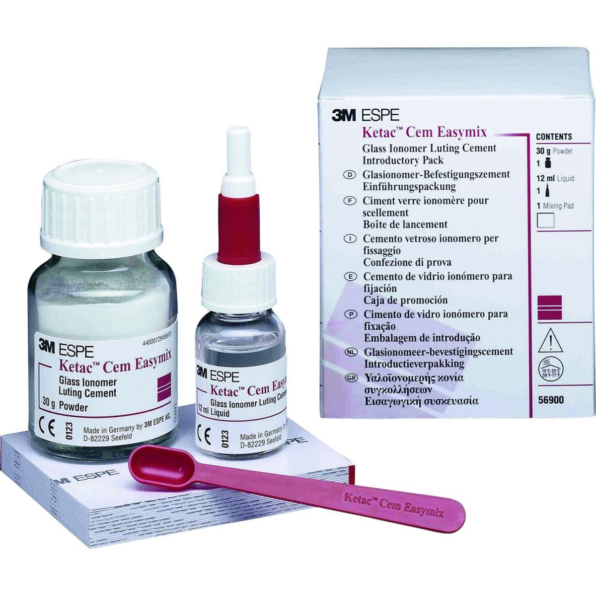 - Xi măng ionomer thủy tinh Ketac Cem Easymix kết hợp sức mạnh của Xi măng Ionomer thủy tinh Ketac Cem Radiopaque của 3M, đã được chứng minh trong hơn 25 năm, với công nghệ tạo hạt cải tiến Xi măng lót kính ionomer cung cấp liên kết hóa học với men răng và ngà răng